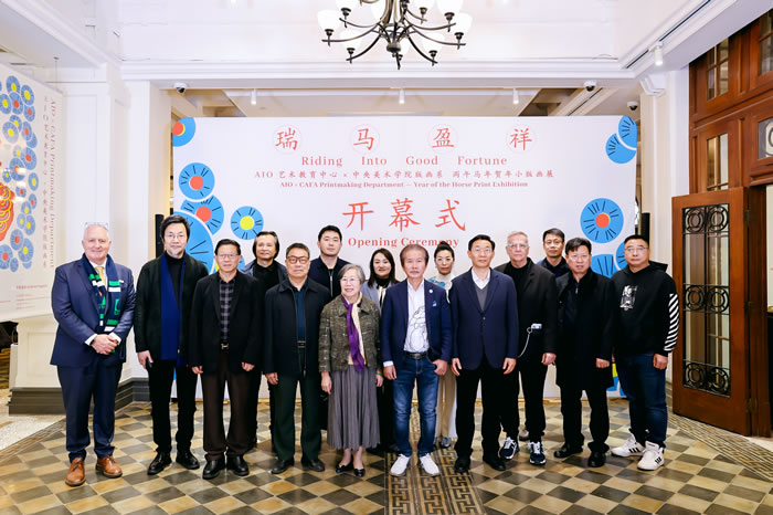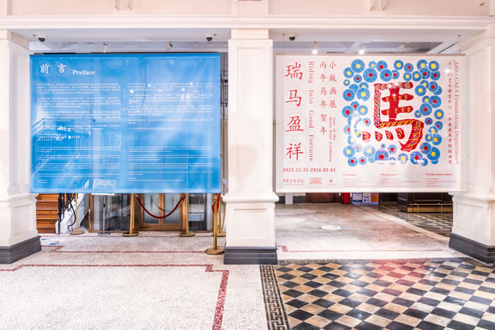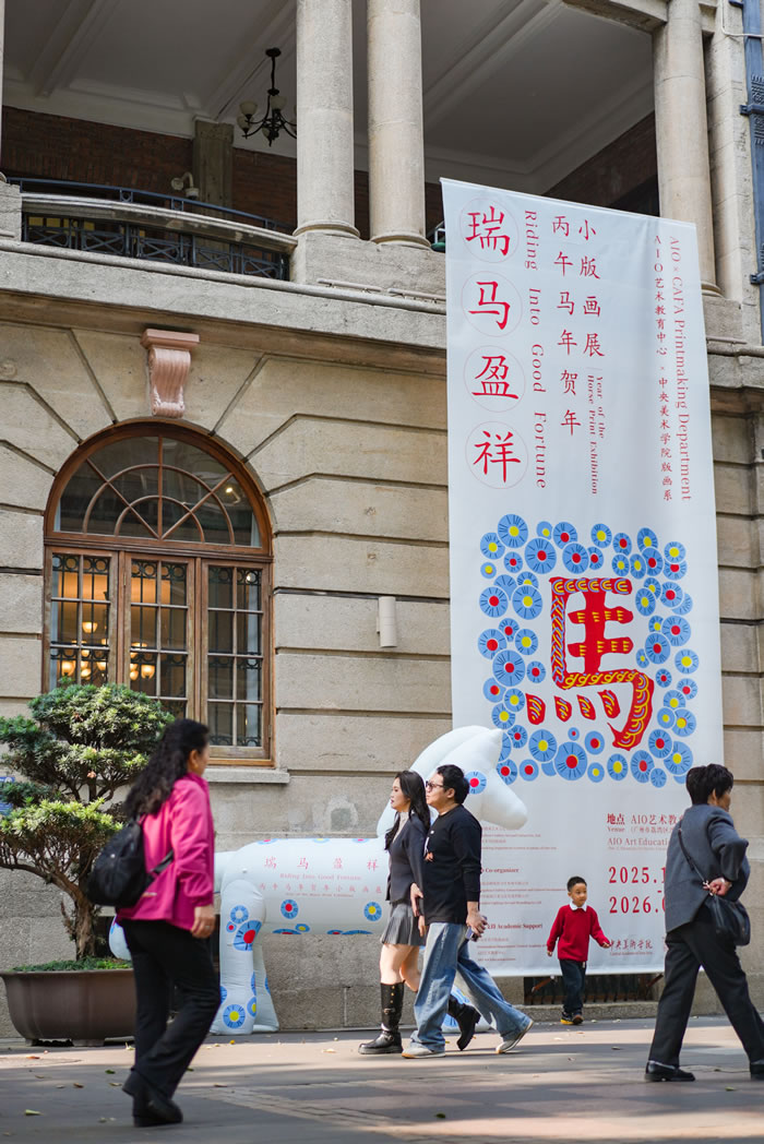 2026年1月12日,中央美术学院版画系师生百人联展《瑞马盈祥》——丙午马年贺年小版画展开幕式于广州沙面一街3号AIO艺术教育中心举行,超百件(组)贺年版画作品在“百年沙面第一楼”里为观众献上长篇新春祝福。展览特设版画美育单元及滚轮印章体验环节,让观众近距离体验版画这种独树一帜、富有手工温度的艺术形式。清新蓬勃的艺术春风盈满百年老楼。